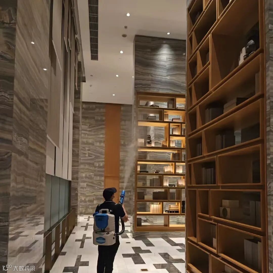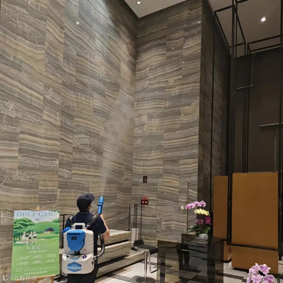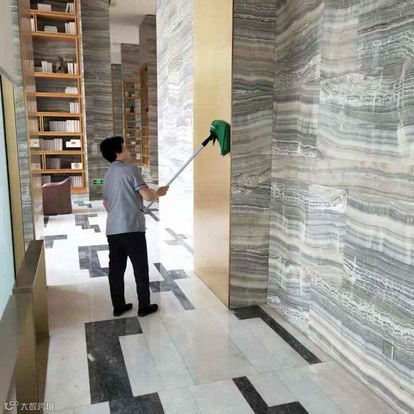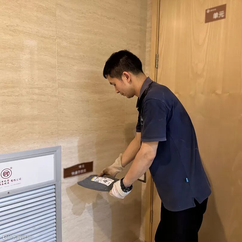 保洁团队每日对大堂玻璃、大堂格栅、园区景观水池、楼层通道、后楼梯、儿童房、会所餐厅、会所健身房等区域进行深度清洁,夜间对各楼栋大堂及负层地面石材进行晶面养护。