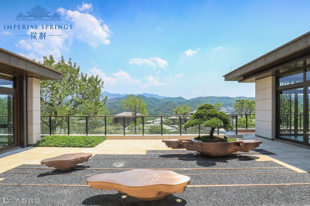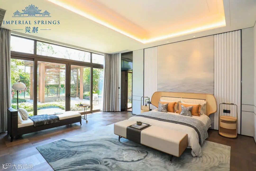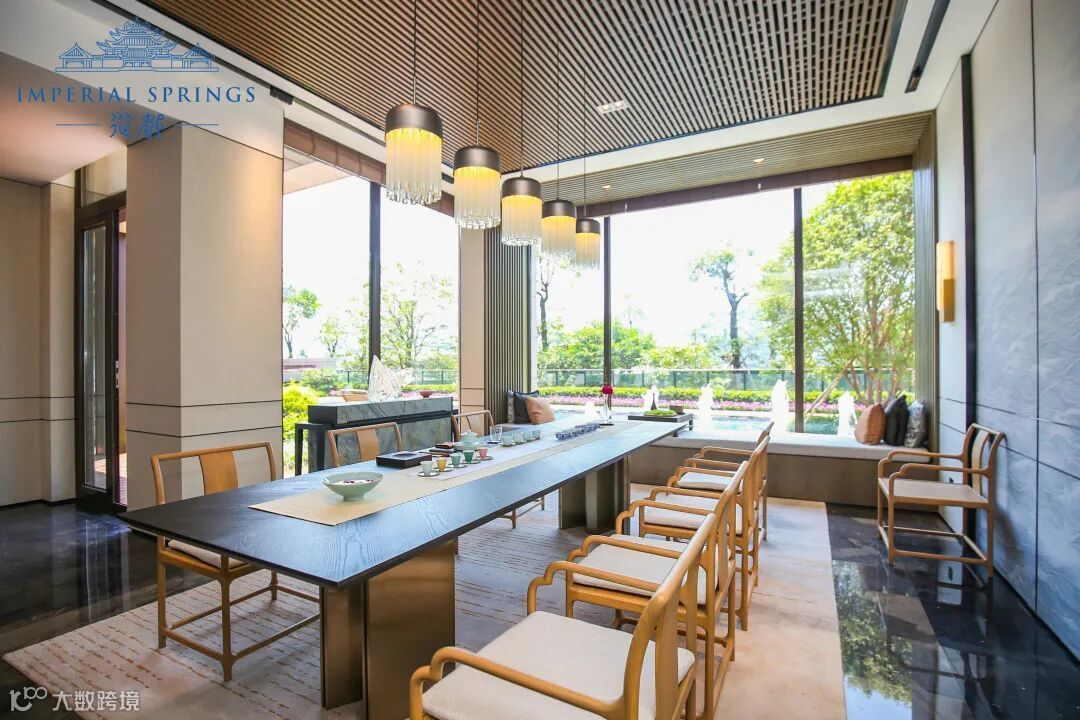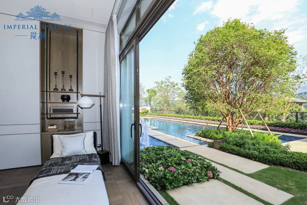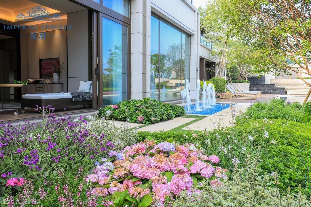 拥有无边界私家游泳池的喷泉花园则是另一番生动美好。夏日将至,不妨践行诗人海子对生活的美好赞美——“活在这珍贵的人间,太阳强烈,水波温柔”。同样珍贵的,还有泳池一侧的氡温泉,从泉眼中不断涌出的纯真泉水,拥有和瑞士相媲美的珍稀品质,亦是全中国绝无仅有。