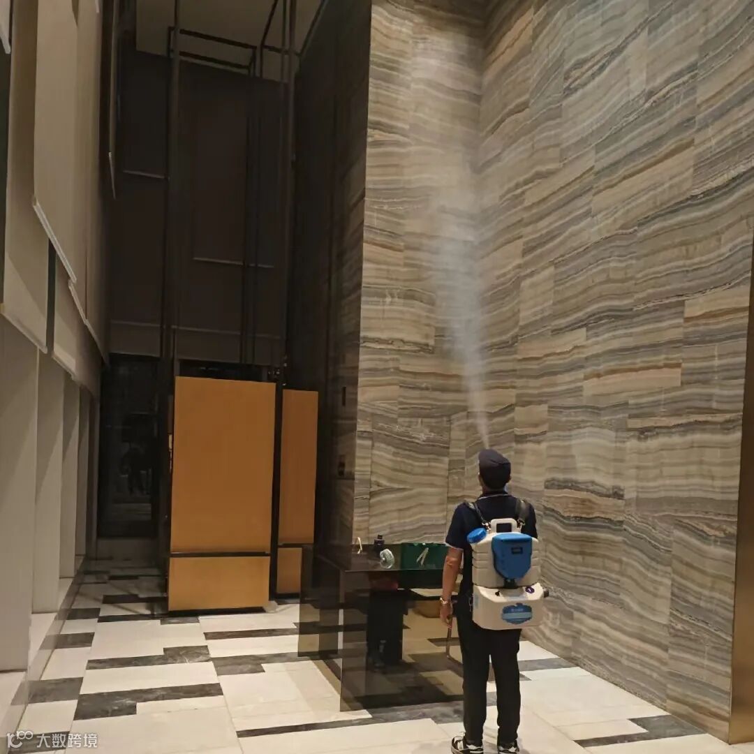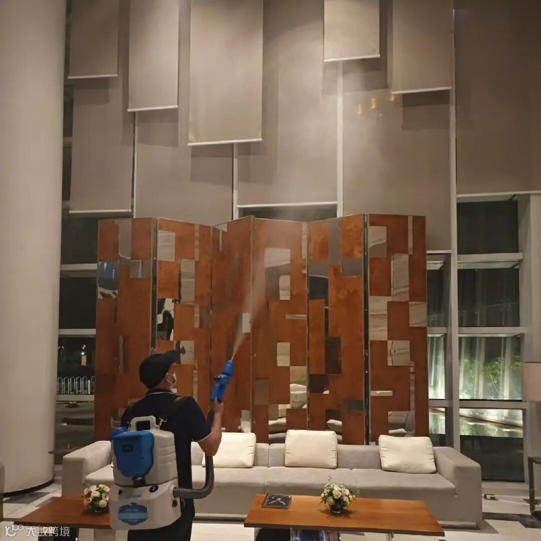 保洁团队每日对大堂玻璃、大堂格栅、园区景观水池、楼层通道、后楼梯、儿童房、会所餐厅、会所健身房等区域进行深度清洁,夜间对各楼栋大堂及负层地面石材进行晶面养护。