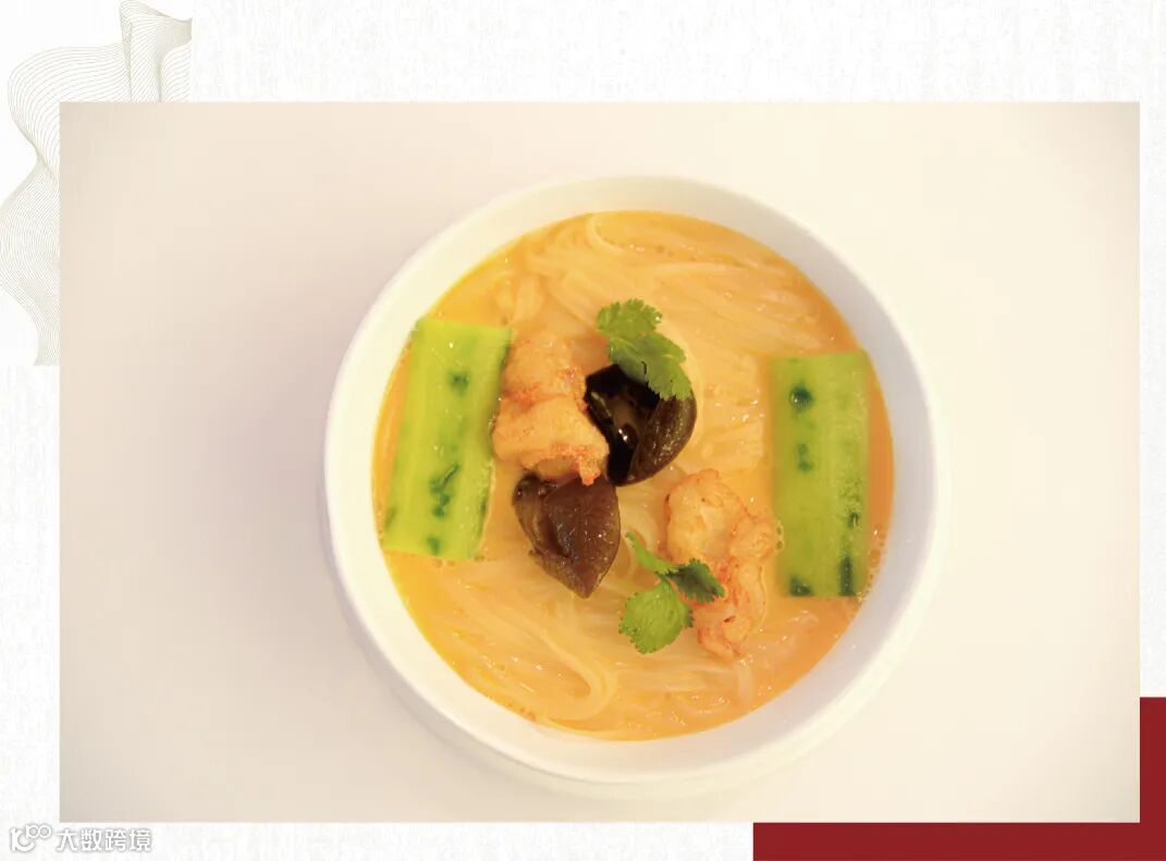 汤色清澈却暗藏乾坤,臻选大龙虾熬汤,配上正宗的稻庭面,滑润而有筋道,用时24小时才能端上桌,最费心思,入口瞬间,海鲜的香气荡漾开来,是必试推荐。