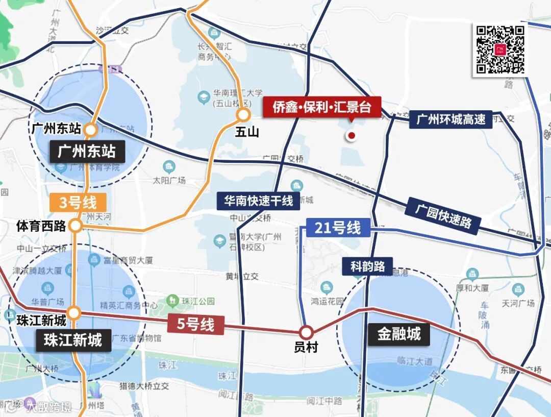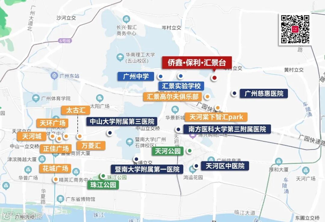 侨鑫·保利·汇景台罕见地兼顾繁华和静谧。它雄踞天河城央,西近珠江新城,南近金融城,东近智慧城、广东奥林匹克体育中心,与繁华但拥堵喧闹的城市中心保持恰到好处的距离;北望火炉山,西接汇景新城两公里中轴景观带,居住与自然融为一体,让健康生活触手可及。