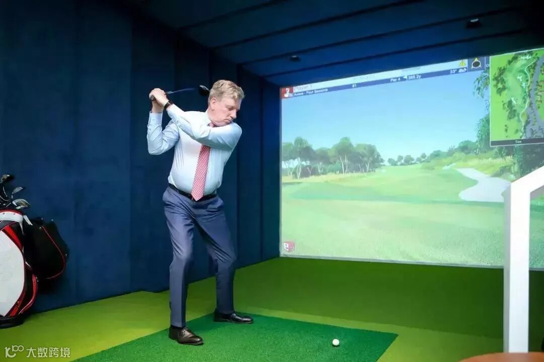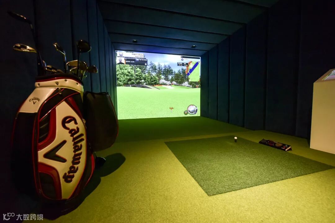 在模拟高尔夫球室