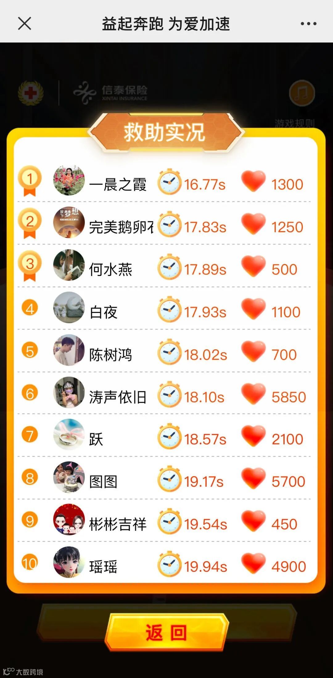 恭喜以上“救助实况”实时排行榜前十名的朋友