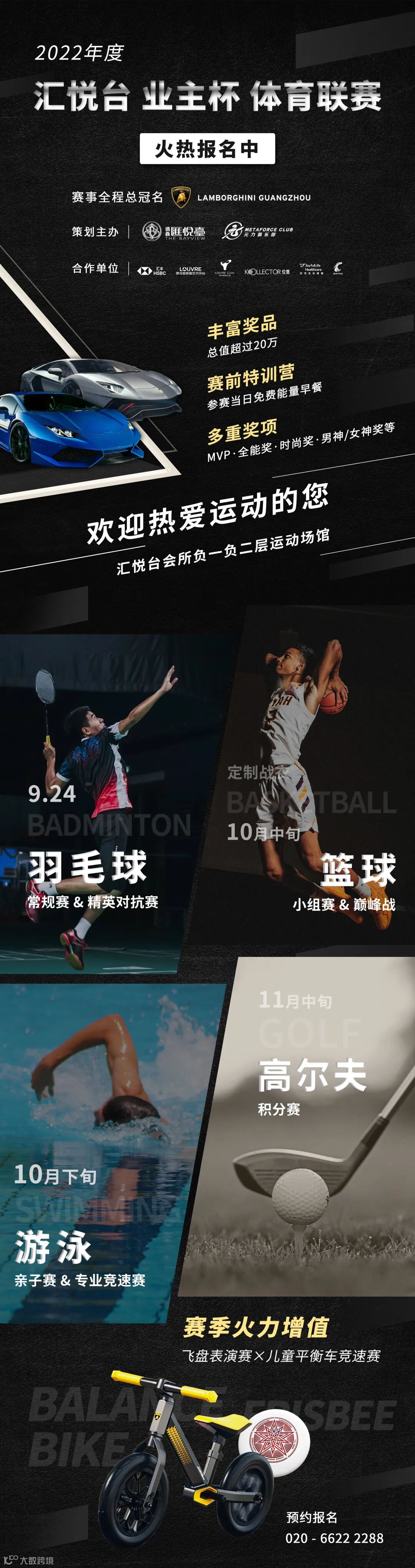 业主杯篮球、游泳、高尔夫等联赛中