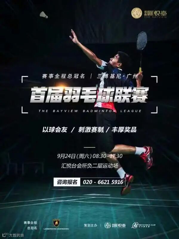 2022年9月24日,首届业主杯羽毛球联赛在汇悦台会所负二层运动场举行。赛事由兰博基尼·广州赛事全程总冠名,元力俱乐部全程赛事运营、汇丰银行、广州罗浮宫家居艺术中心、欣然生命、悦space等系列高端品牌联合支持。