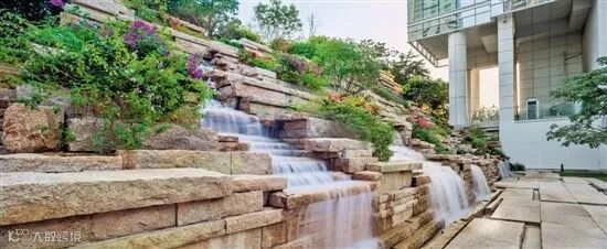 这一片瀑布涓流是整个园林最灵动的节奏所在,在花丛簇拥下,更有巴比伦花园的宏伟感。