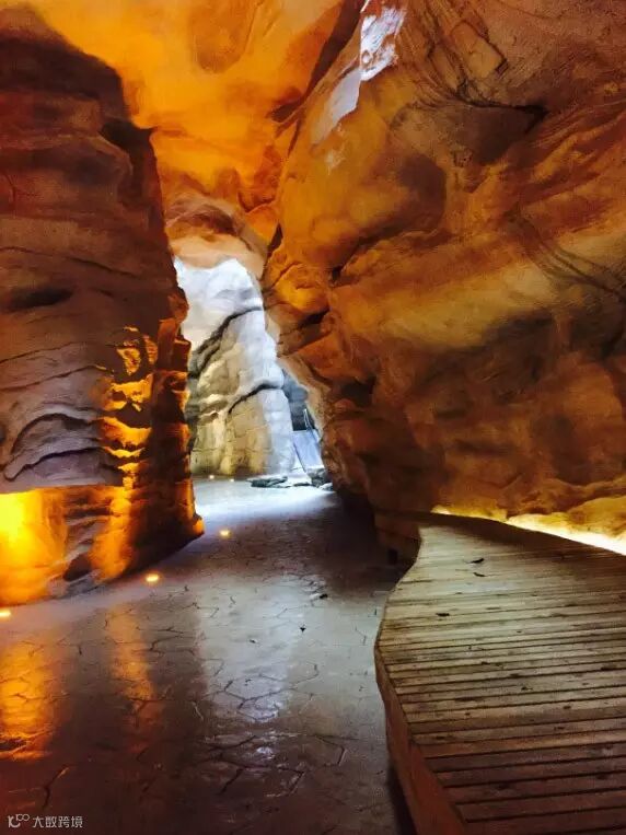 三个向蓝天敞开的采光口,加之创意照明创造出的对比强烈光影效果,连设计者置身其中都难以辨别它与真正羚羊峡谷的区别。那酷似自然红砂的岩壁与美轮美奂的波纹,让僑鑫•匯悅臺的园林景致成为了广州唯一。