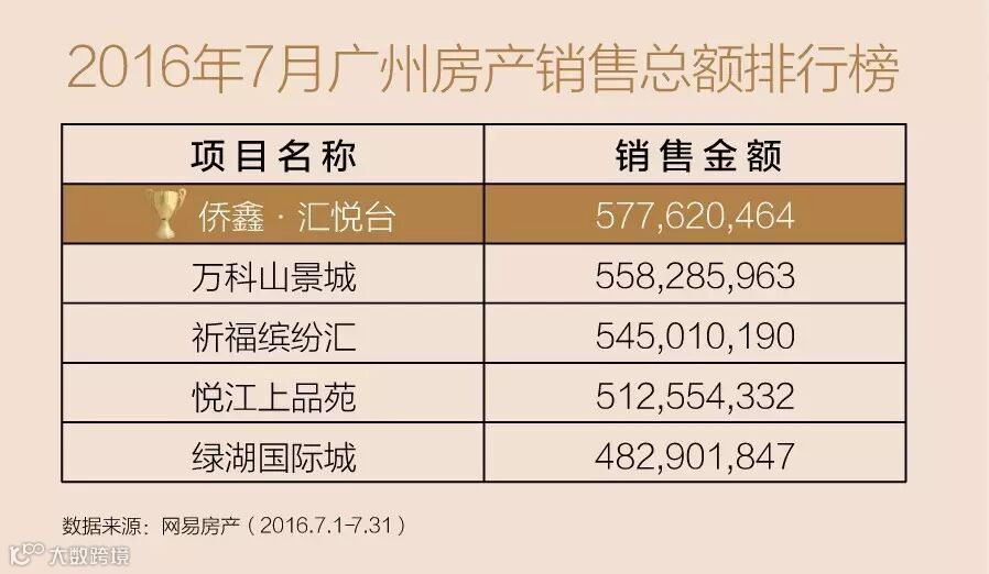 形势变化连带格局异动,7月份广州楼市销售排行的最大变化,是以顶级豪宅产品为主力的侨鑫·汇悦台发力超车,出彩闯入前十,更一举拿下7月广州住宅单盘销冠。