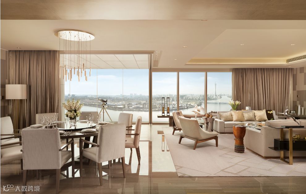 在汇悦台“最美观赛台”,百米高空之上,见证跑者们的到达。透过270度全景玻璃窗,把窗外这些一览无余的景致引入家中,从高处的视角,以城市的道路为背景,看到人群虚化成一个个小点,随着珠江水的缓慢流动而跳动。