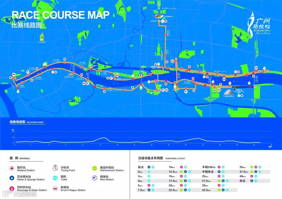 从临江大道到猎德大道,在花城大道隧道上方折返,踏上猎德大桥,穿过西二号路,甚至可以一路跑到琶洲展馆,放下工作的负担和终点的压力,只关注自己的脚步,感受下这项国际赛事的氛围,在这个过程中收获新的感悟。