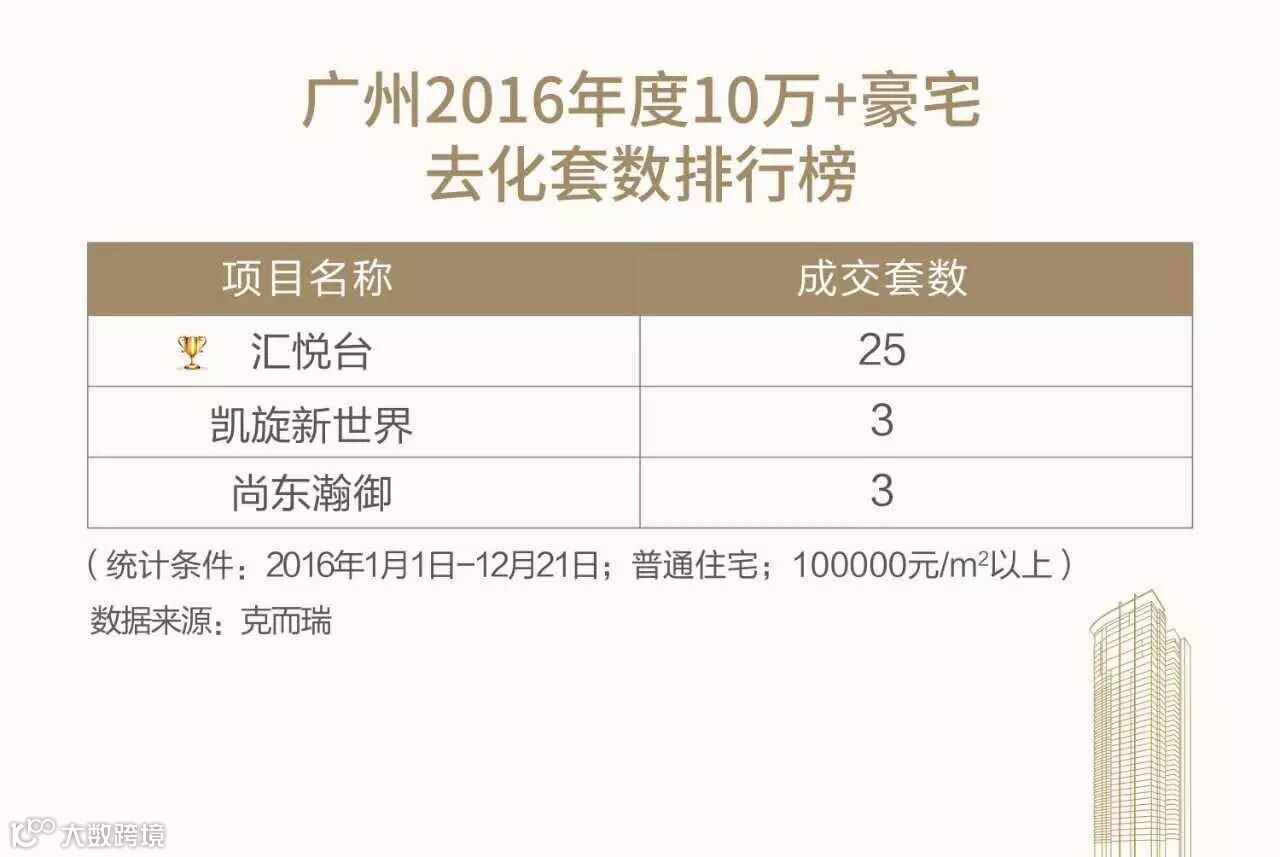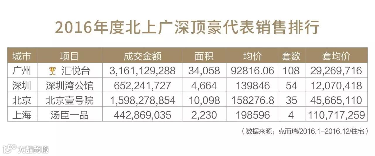 北上广深豪宅代表中,侨鑫•汇悦台在2016年的成交总套数、成交总面积以及成交金额上荣登榜首。