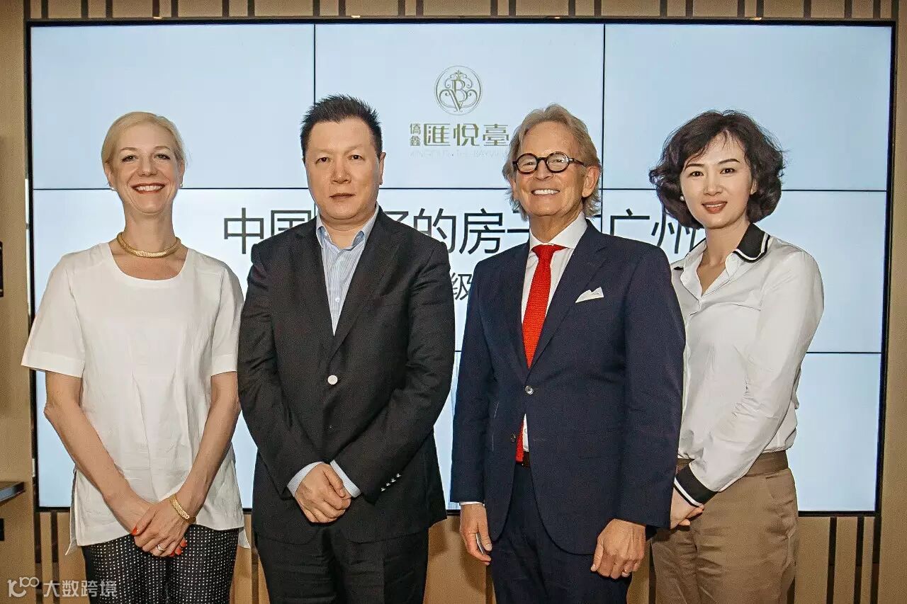 左起,英国著名室内设计师Juliet Eardley、侨鑫地产总裁黄卫平、佳士得亚太区高级副总裁Zackary、侨鑫集团副总裁张学凤。