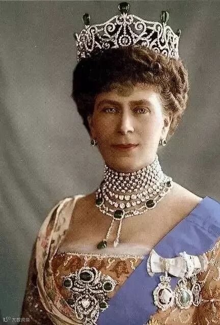 杰拉德特别为玛丽王后创制了一套绿宝石与钻石结合的德里杜尔巴头冠和项链