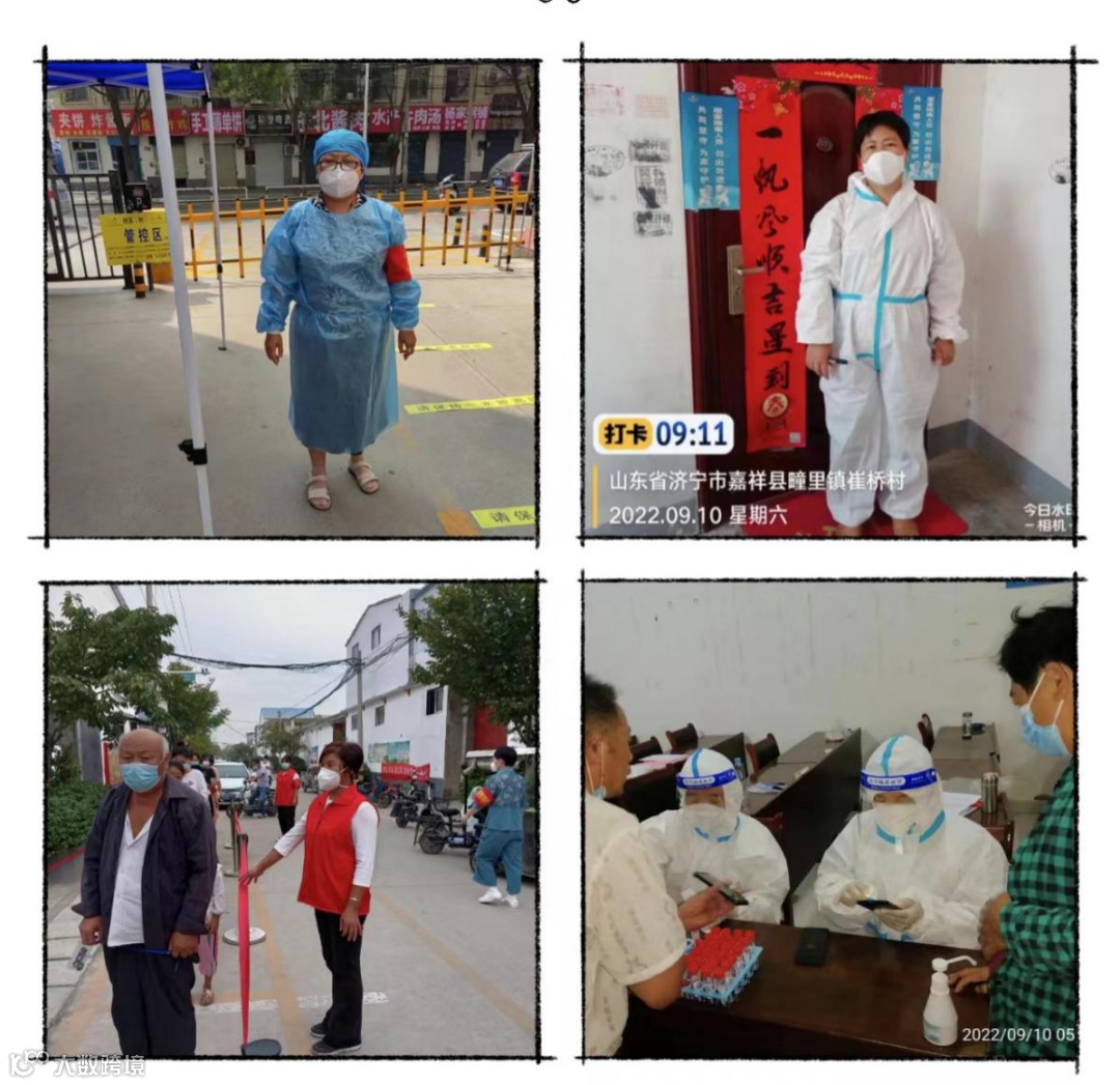 50岁的李庆红是济宁中支个险部的一名员工,同时也是任城区汪西村的妇联主任。农村是疫情防控的弱点,也是第一线战场,防控形势严峻。李庆红年过五旬仍尽锐出战,与年轻同志们一同挺在抗疫前线。每天连轴工作,不仅投身于采样现场,还要劝阻在外村民及时回家。一天下来,李庆红的微信步数总能轻松过万。当公司领导向李庆红打去慰问电话,她爽朗的回答道:“疫情防控是大考验,作为一名妇联主任,受到村民的信任,理应冲在最前面,为村民服务,我感到很光荣。”