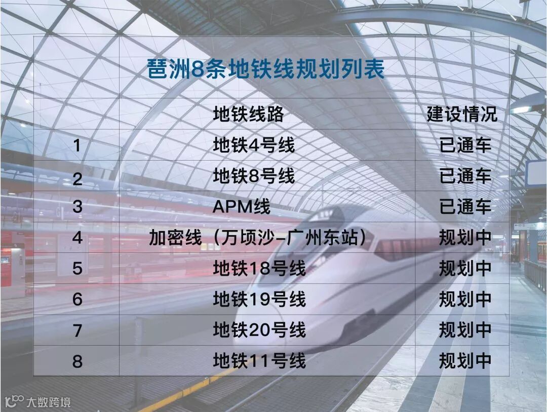 2条城际轨道线路(广佛环线、穗莞深支线),构建大湾区广州、佛山、东莞三点一线的半小时生活圈。
