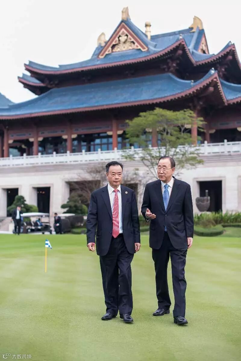 ▲澳中友好交流协会会长、 世界领袖联盟亚太区主席、侨鑫集团董事长周泽荣博士(左)与联合国前秘书长潘基文(右)交流,这种不拘泥于形式的互动与交往,既私密又放松,有助于建立熟悉度和信任度,也能让双方开诚布公。