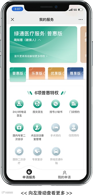 “绿通服务”作为保险公司将保险产品和健康服务相结合、为投保客户提供附加值服务的健康管理系统中的重要服务内容,目前,信泰保险已经建立了科学规范的“绿通服务”体系,绿通服务申请通过后,一般正常2个工作日预约专家门诊号,5个工作日可完成住院协调,7个工作日完成手术协调。