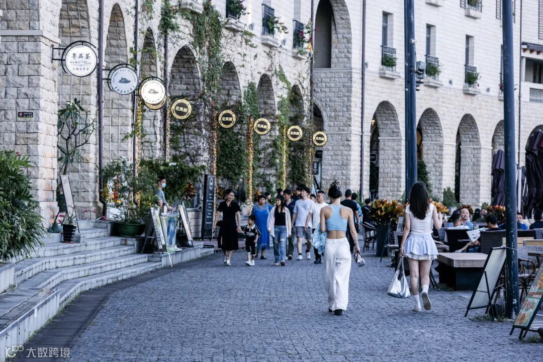 到了夜晚,这里变身潮流聚集地:周末的文旅市集上,美食市集的小摊前排起长队;灯光亮起后,露天电影、星光Live轮番上演,冰美式与微醺小酒碰撞出夜经济的火花。