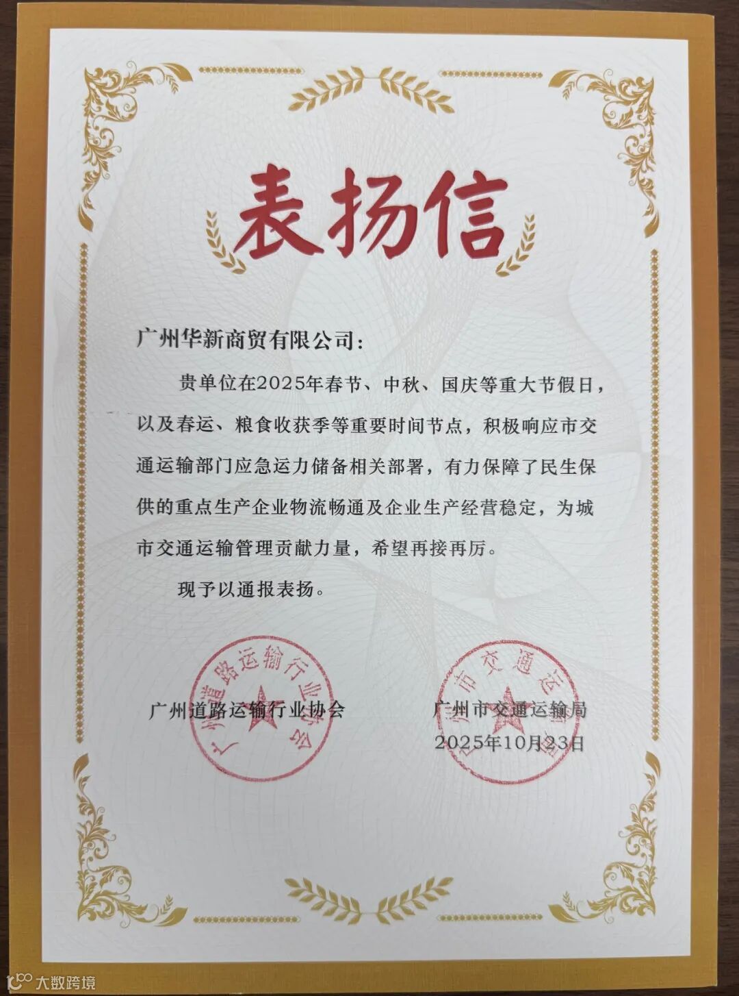 未来,广州华新商贸将继续以这份荣誉为起点,深耕城市物流与应急保障领域,持续提升运力储备与应急响应能力,在守护民生、服务城市发展的道路上笃定前行,为广州的交通运输与物流保供事业贡献更多力量!