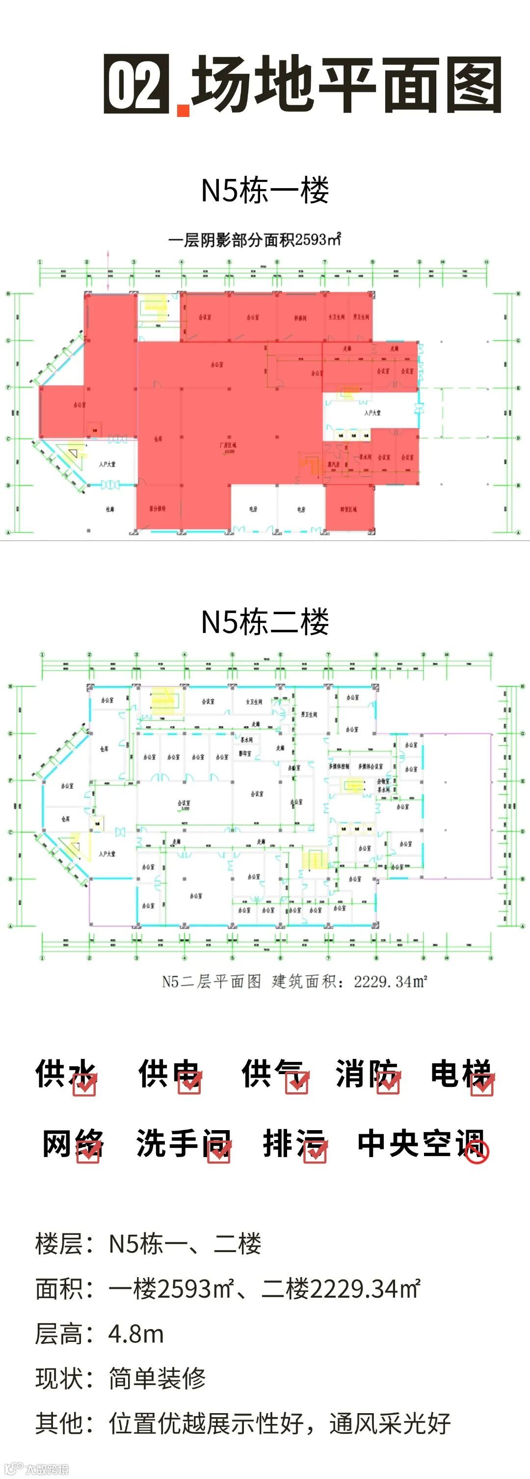 N5栋目前为简单装修状态,给您提供了自由发挥的空间,可以根据自身商业需求进行个性化的设计与装修。
