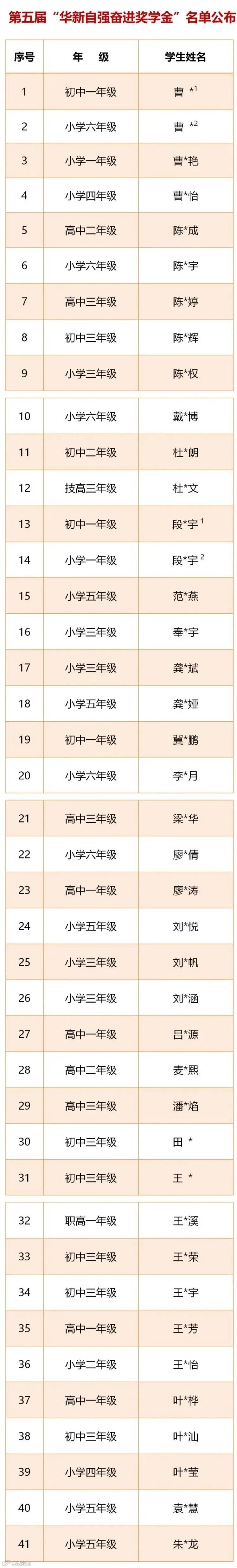 华新基金会持续关注外来务工子女的教育和发展,于6月开展第五届华新自强奋进奖学金活动。经严格评审,共41名学子(来自广西、湖南、贵州等地)凭借勤奋努力和优异成绩荣获本届奖学金。