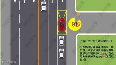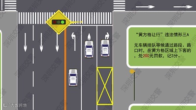 “上下客”是指驾驶员在车内,在施划黄方格的出入口、路段,当遇前方无车辆停车排队等候或缓慢行驶等情形时,机动车停在黄方格区域上下客的,认定为违法占用黄方格,处200元罚款、扣3分。