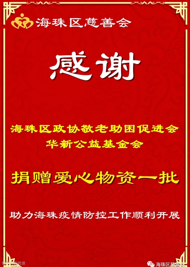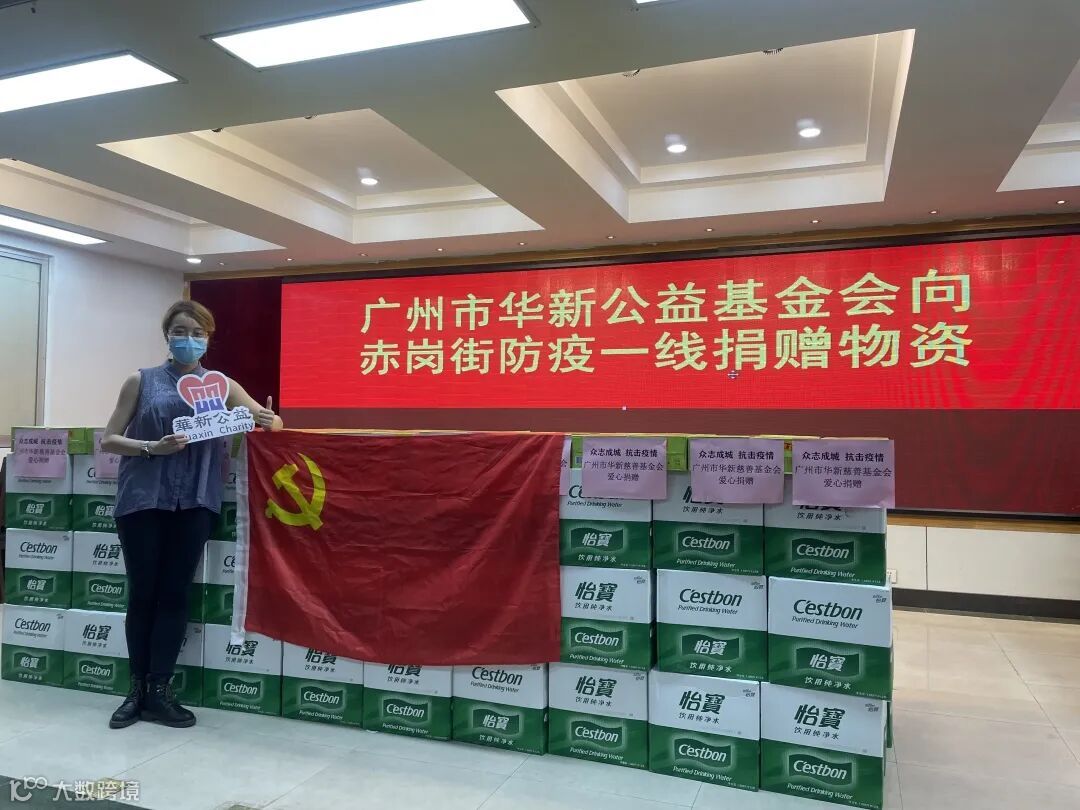 广州市华新公益基金会全力支持和参与我市疫情防控工作,于5月27日至6月9日,先后向海珠区政府、区民政局、区慈善会、市社联及海珠区赤岗街、沙园街、南华西街、南州街、瑞宝街、紫龙大街、素社街等20多个疫情防控点支援饮用水、食品等5000多箱防疫物资,总重超50吨,价值数十万元,以慰问一线医护、社区工作人员及基层民警,为我区防疫、防控、防暑工作的顺利开展提供物资援助。此外,华新基金会积极整合各界资源,携手华新党员、志愿者成立抗疫志愿队伍,站好服务大局、抗疫救急的公益岗位,从严从急推动疫情防控工作提质增效开展