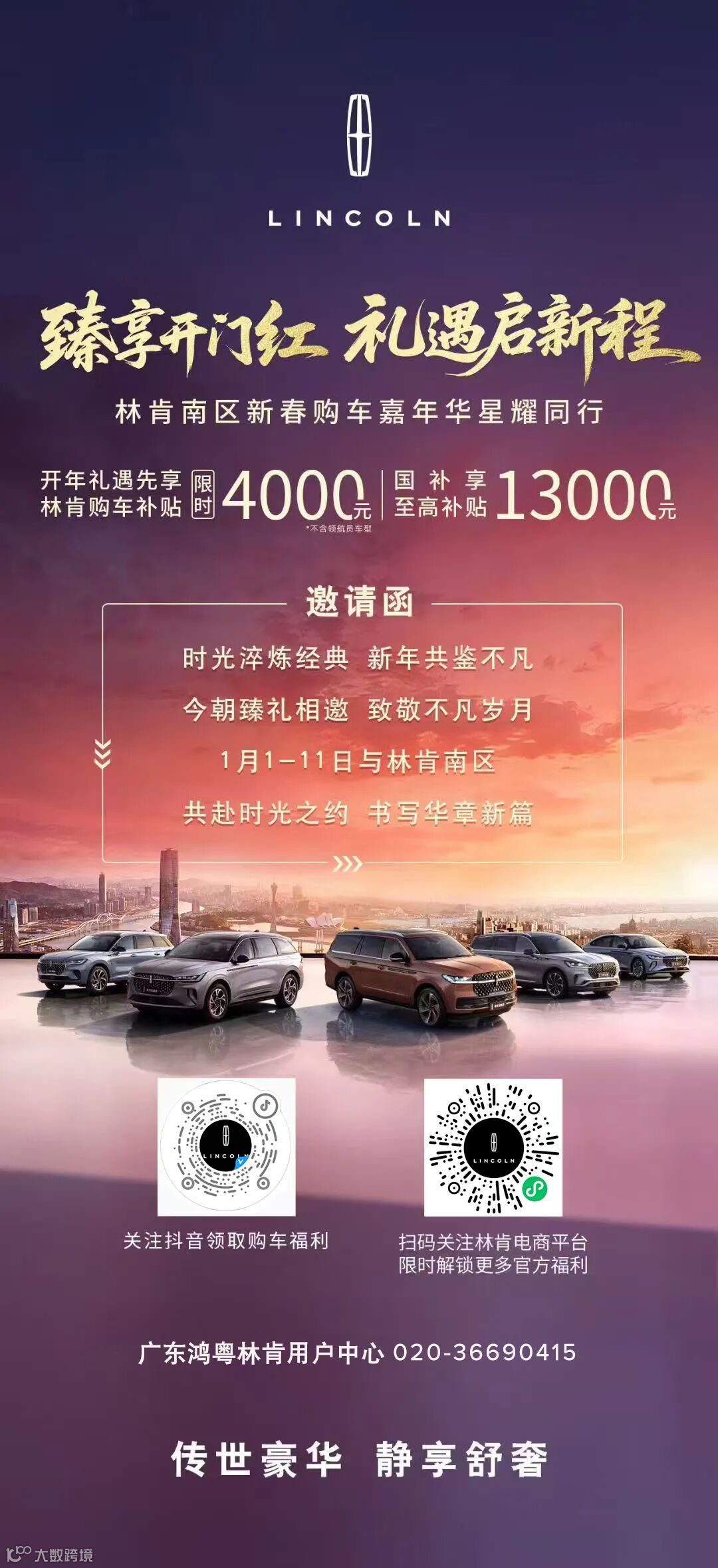 欢迎关注广东鸿粤汽车集团,广东鸿粤国誉汽车销售服务有限公司,广东鸿粤林肯中心是华南地区首家林肯授权经销商,主要经营林肯品牌,为客户提供整车销售,整车售后,零配件供应、汽车用品研发等服务,林肯之道,始于懂你。