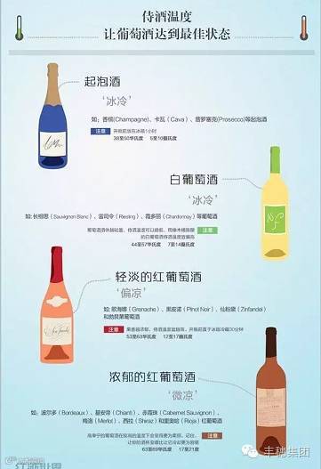 温馨小提示:品质越低的葡萄酒的侍酒温度越低越好,因为温度越低,葡萄酒中的香气就越难以散发出来。起泡酒当然是越冰凉越好喝,不过昂贵的、高品质的起泡酒除外。