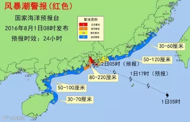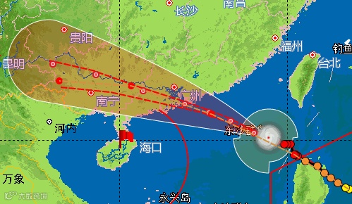 7月31日23时台风“妮妲”加强为台风级,8月1日6时,中心位于深圳市东南方603公里的南海东北部海面,中心附近最大风力12级。预计“妮妲”强度继续加强,移速加快,以强台风级别在广东沿海地区登陆。