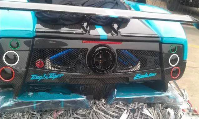 这位富二代自己的豪车也不少,被人拍摄到的豪车就有帕加尼Zonda F Roadster,这辆车最早发生过车祸,后来修复时改用了蓝黑配色涂装。最后落入富二代的手中,车尾还有他自己“Ting Tiger”的标示字样。据说他买这辆二手的帕加尼花了2000多万,也是任性。