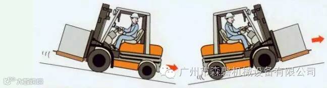 • 上坡时必须将门架尽量后倾到极限位置以确保货叉不碰到地面