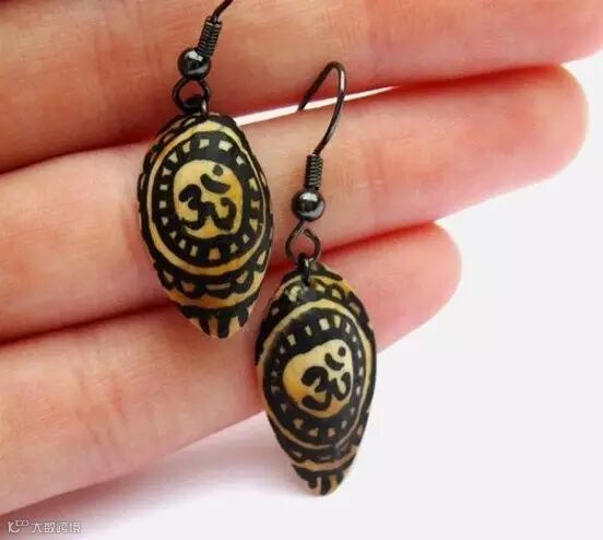 直接在上面画画,打孔,买现成的五金件穿起来。也就戴着玩儿,挂两个开心果皮在耳朵上还是有些奇怪的。