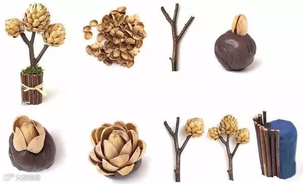 最后,手残星人专供:不需要审美,不需要涂色,粘一粘就好的开心果壳果盘……