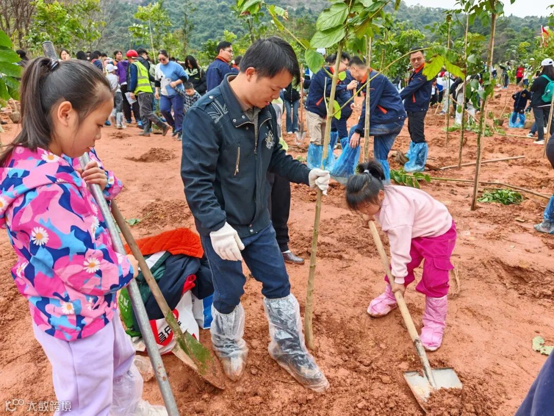 活动现场,联柔公司职工带领孩子组成“亲子植树队”,卷起袖子,拿起铁锹,扶起树苗,大手牵小手,共植一棵树,共建亲子林,为初春的黄埔增添一抹新绿。
