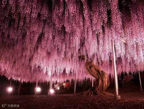 古老的紫藤树,花如瀑布雨水,甚是震撼!
