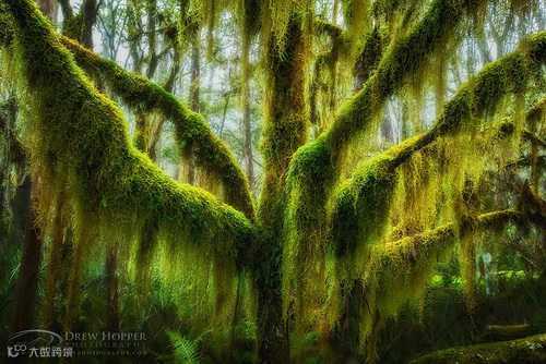 树上挂满了苔藓,就像一张张绿帘。