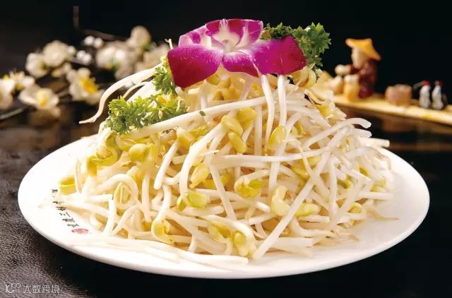 含有视黄醇、磷、钾等成分。黄豆芽味甘性寒,有清热利水的功效。黄豆芽可与肉类共同炒食。