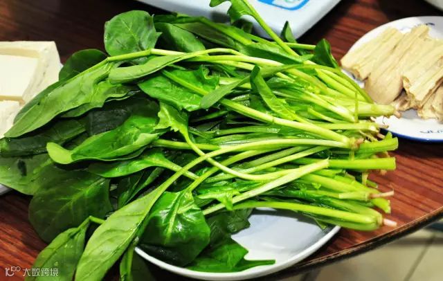 含有钙、镁、维生素 C 、维生素 A 、视黄醇、钾、磷、钠、硒。菠菜味甘性凉,有养血通便之功效。菠菜可以煮汤或烹制菠菜肝片等菜肴,均为春季佳肴。