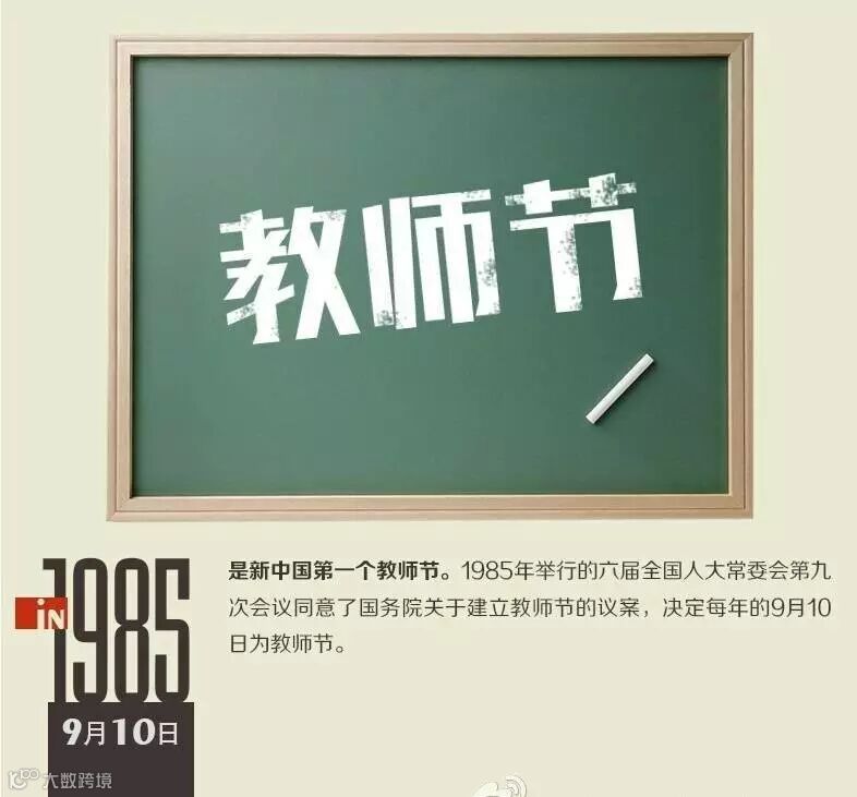 1985年1月,国务院总理在全国人大常委会上提出建立教师节的议案,全国人大常委会通过了这一议案,确定每年中国的9月10日为教师节。