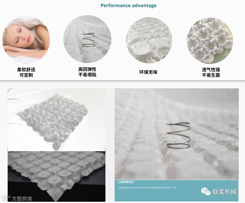 蜂窝式高密度床网,能压缩30-40mm,受力点分布密集,适合做高硬度,高弹力的高端床垫产品。