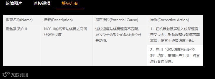 设备发生故障,用户的手机或者其他终端会收到Smartline系统的报警推送,可以马上进行排查,进入设备详细界面,可查看故障详情及推荐的解决方案,用户可根据图片视频等材料自主处理问题。