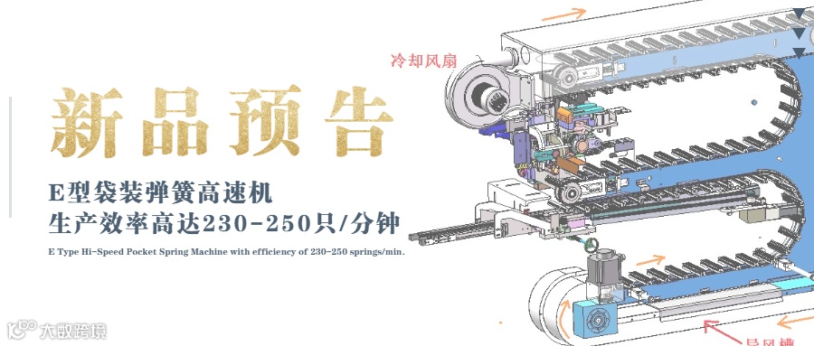 高-高速运行:最高速度160-180只/分钟,钢丝直径范围1.3mm-2.3mm,弹簧直径范围48mm-75mm,弹簧入袋高度80mm-250mm