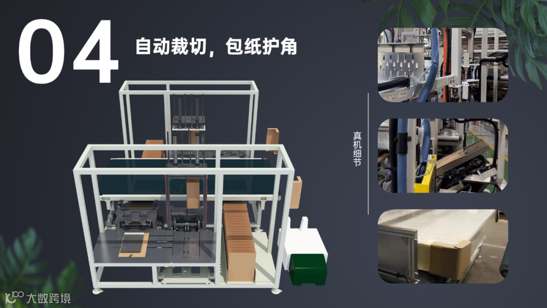 纸护角自动滚压成型,备料方便;多个模块同时运行,包装效率高;纸护角自动裁切,结构合理,外形美观;