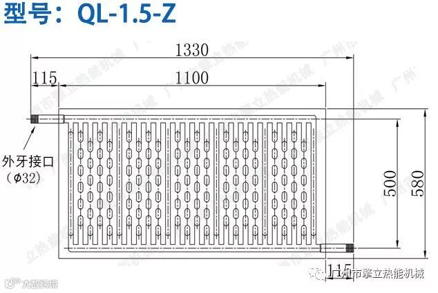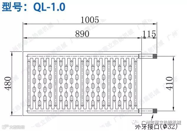 沉浸式换热器整体热力结构是根据矩形板壳瓦楞扩展传热原理,传热板表面曲面系数有效地提高了流体运动中的传热要素—流体紊动率,减少流体边界层热阻和温度梯度,促使流体向全平面传递,从而强化传热效率。