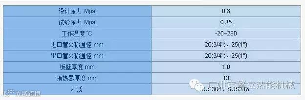 沉浸式换热器,材质为不锈钢SUS304、SUS316L,工作温度:-20~280℃,设计压力为0.6Mpa,具体型号规格及参数有如下四种: