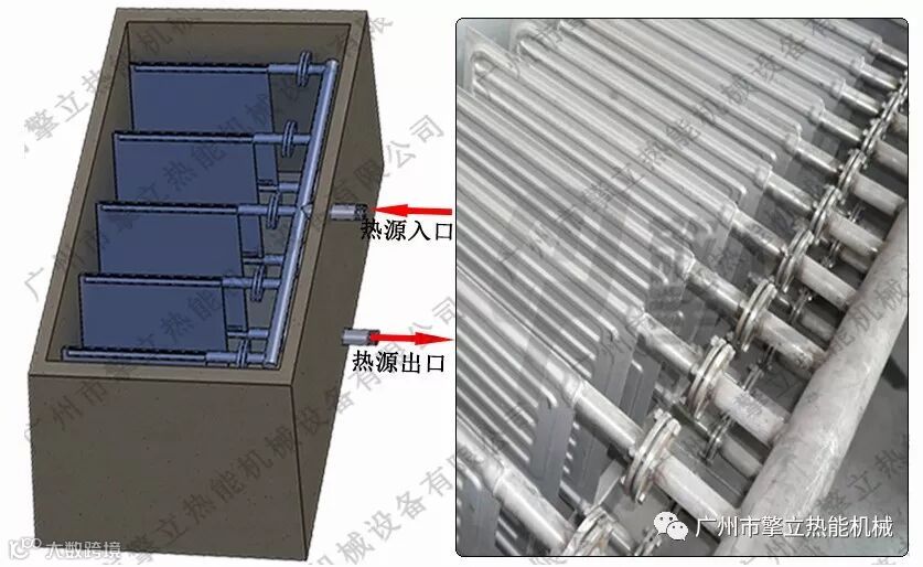 平板沉浸式换热器,一款放于槽池内的沉浸式板状热交换器,由两块特殊传热壁板合成,传热板之间形成流体运动通道,通过间壁式传热方式进行热量交换,是液-液、液-汽体的热交换的理想设备。它具有换热效率高,热损小,安装清洗方便,耐腐蚀等特点,传热效率高达95%,可用于化学表面处理、涂装工程、喷淋酸洗等领域。