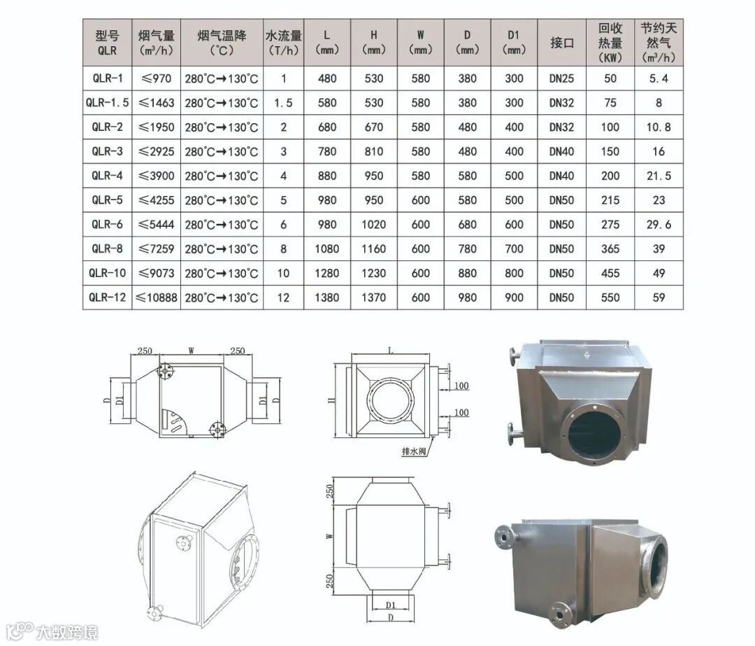 就是配套常规1吨、2吨到12吨的常规锅炉的节能器,因为做的比较多,我们已经有常规的工况数据可以给大家参考: