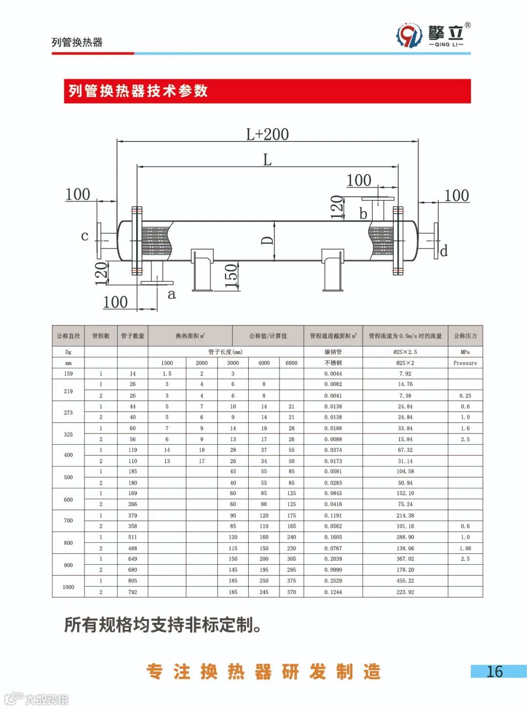 ,十余年专注换热器研发制造,多种类型的列管式换热器都能生产,常用尺寸参数如下,也可以非标定制多种规格的壳体,基管。