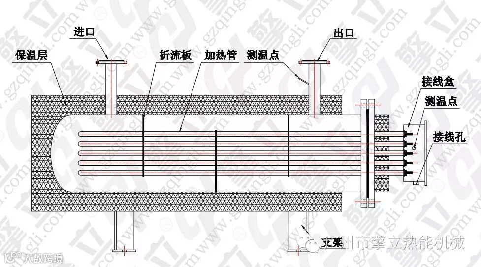 通常采用Φ11x0.8-23mm的电加热管,其他常用电加热管规格有Φ18x0.8-30mm(加热管和翅片材料为SUS304),发热丝材料为OCR25AI5,加热管厚度0.8mm可以改变;